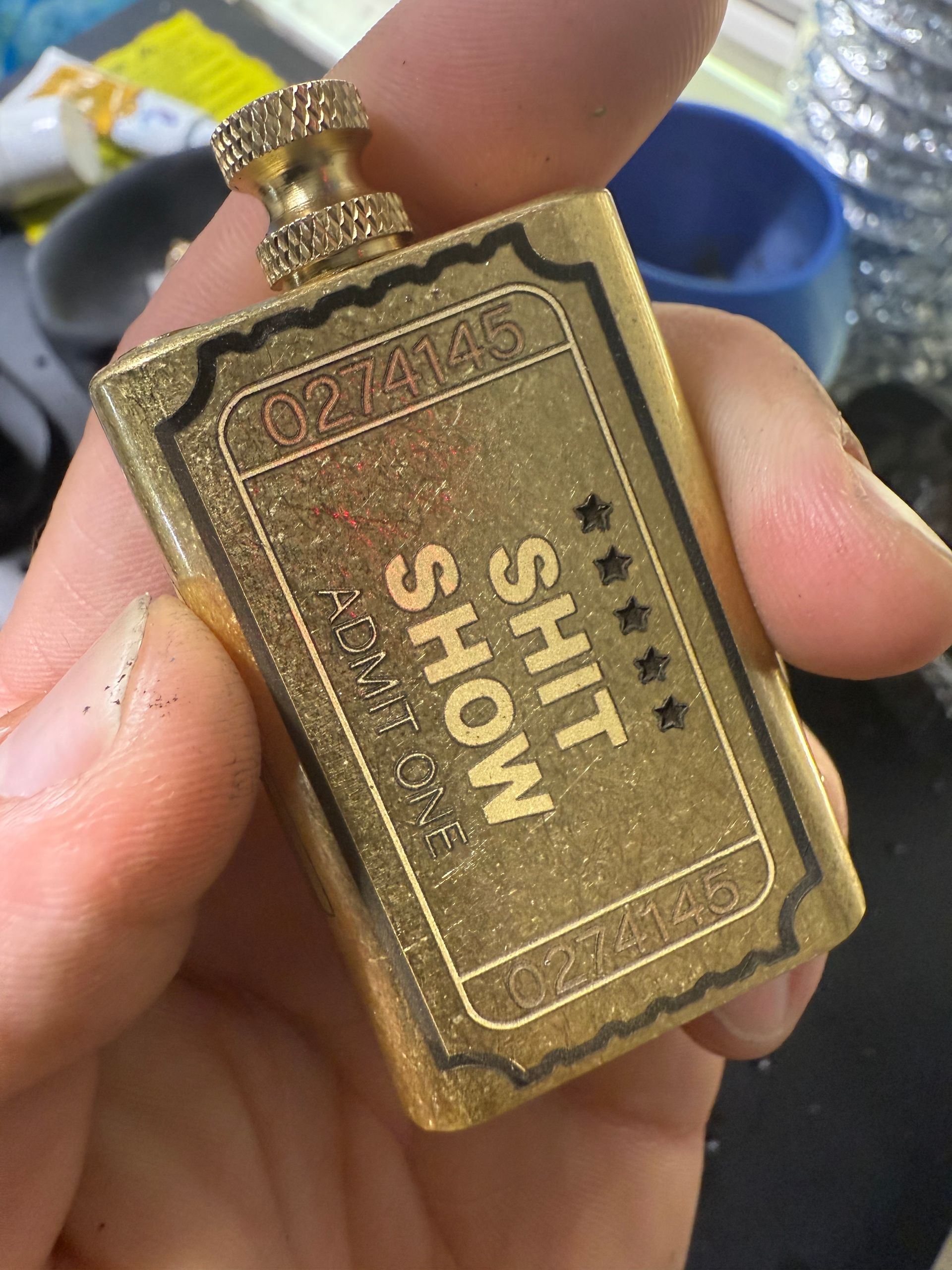 Perfect for today's times. This Brass trench lighter is high quality and also a pass to the shit show we call life.